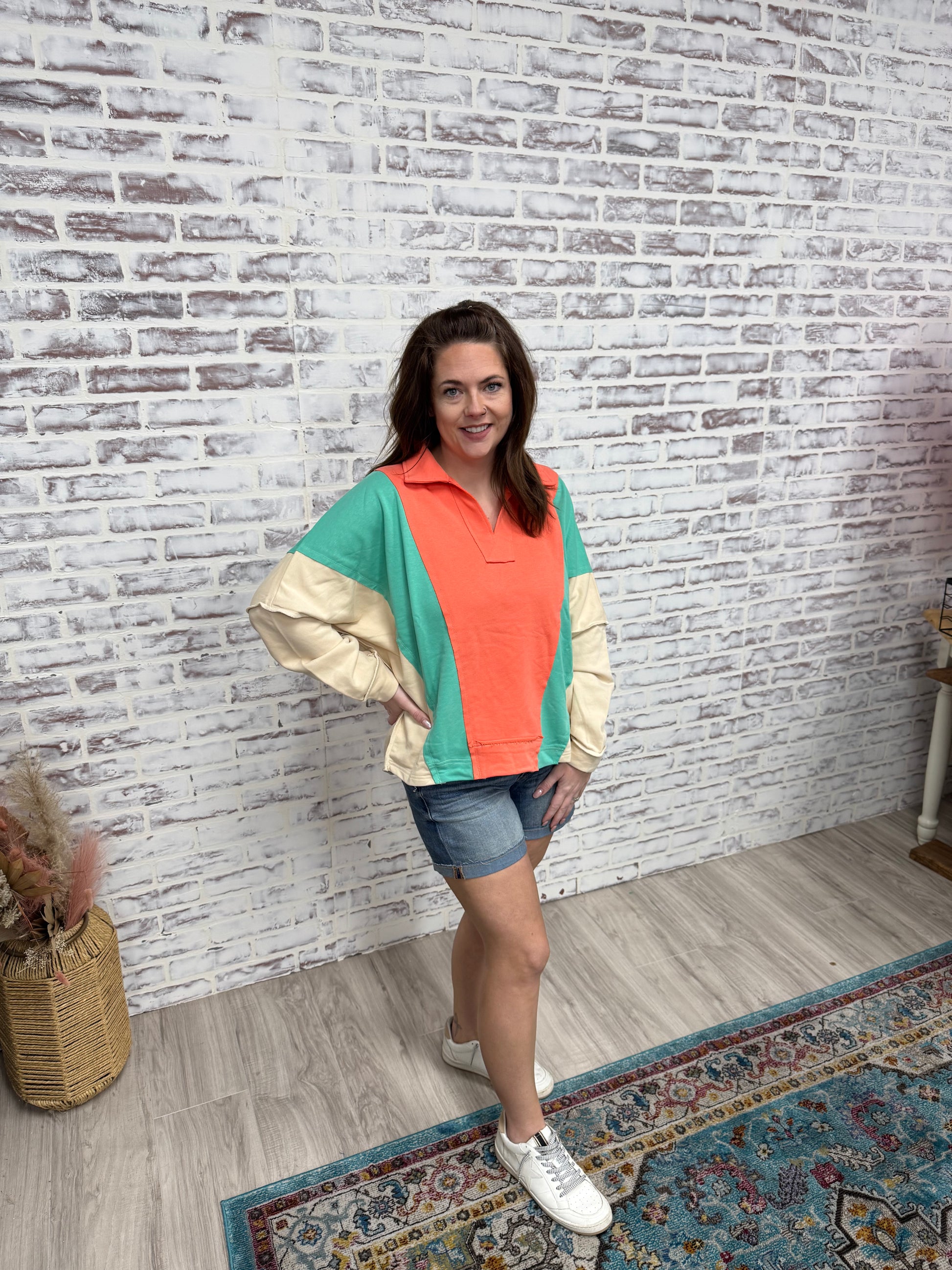 Collared Color Block Top